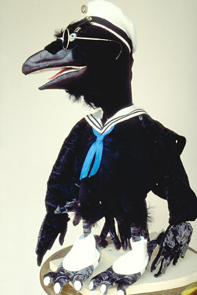 Der Sängerrabe ist eine Hand-Stabpuppe.