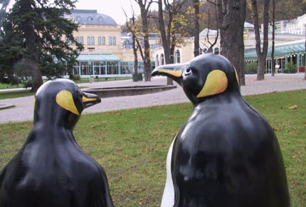 Die Pinguine Franz und Elisabeth verbrachten einen entspannenden Aufenthalt in der Kurstadt Baden bei Wien. Elisabeth liebt den Cafeplausch an der Hotelbar und Franz die Spaziergänge im Kurpark. Am Abend standen Heurigenbesuche und auch ein Abend im Casino am Programm.